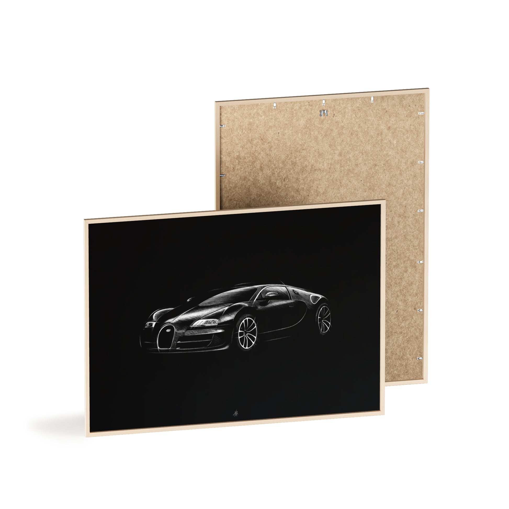 Dessin encadré, illustré à la main de la Bugatti Veyron, à exposer comme décoration intérieure !